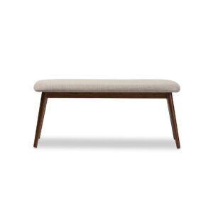 Baxton Studio Flora Mid-Century Modern Light Grey Fabric and “Oak” Medium Brown Finishing Wood Dining Bench