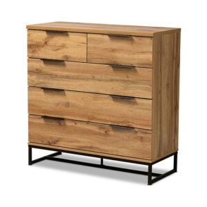 Baxton Studio Franklin Modern and Contemporary Oak Finished Wood and Black Finished Metal 5-Drawer Bedroom Chest