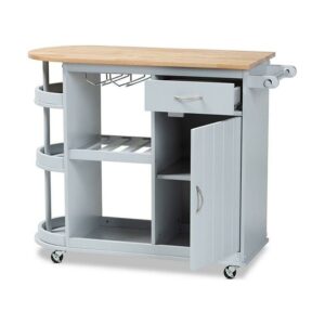 Baxton Studio Donnie Coastal and Farmhouse Two-Tone Light Grey and Natural Finished Kitchen Storage Cart