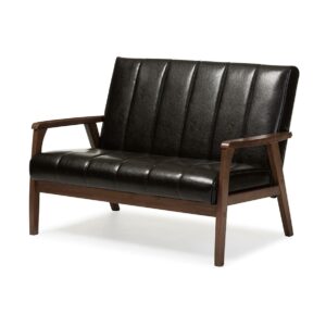 Baxton Studio Nikko Mid-century Modern Scandinavian Style Dark Brown Faux Leather Wooden 2-Seater Loveseat