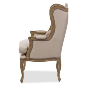 Baxton Studio Oreille French Provincial Style White Wash Distressed Two-tone Beige Upholstered Armchair
