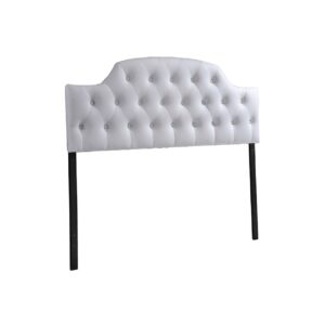 Baxton Studio Morris Modern and Contemporary Queen Size White Faux Leather Upholstered Button-tufted Scalloped