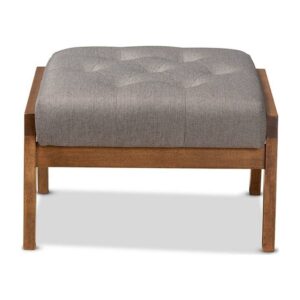 Baxton Studio Naeva Mid-Century Modern Grey Fabric Upholstered Walnut Finished Wood Footstool