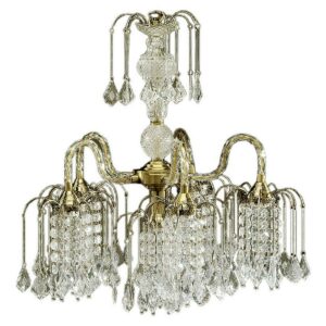 25″ Tall Metal Chandelier with Antique Brass Finish and Crystal Accents