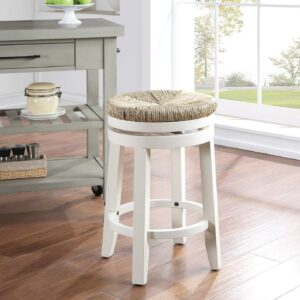 26″ Swivel Counter Stool Engineered Wood Woven Seagrass Seat in White 2 Pack