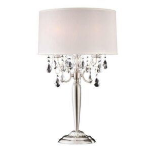 29.5″ Tall Metal Table Lamp with Silver finish and Crystal Accents, Ivory Fabric Shade