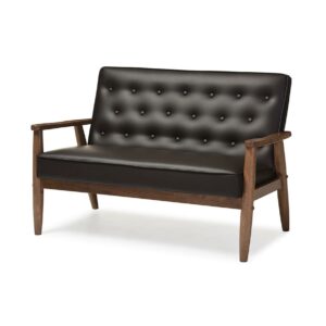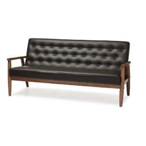 Baxton Studio Sorrento Mid-century Retro Modern Brown Faux Leather Upholstered Wooden 3-seater Sofa
