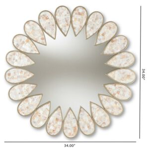 Baxton Studio Savita Modern and Contemporary Antique Silver Finished Round Shell Petal Accent Wall Mirror