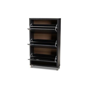 Baxton Studio Simms Modern and Contemporary Dark Grey Finished Wood Shoe Storage Cabinet with 6 Fold-out Racks