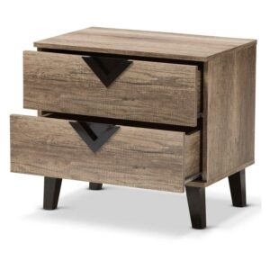 Baxton Studio Swanson Wood 2 Drawer Nightstand in Distressed Oak