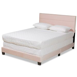 Baxton Studio Tamira Contemporary/Modern Velvet Tufted Panel Bed, Queen, Light Pink/Black
