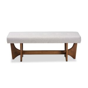 Baxton Studio Theo Mid-Century Modern Greyish Beige Fabric Upholstered Walnut Finished Bench