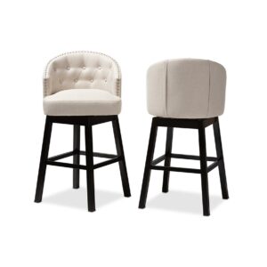 Baxton Studio Theron Transitional Light Beige Fabric Upholstered Wood Swivel Bar Stool Set