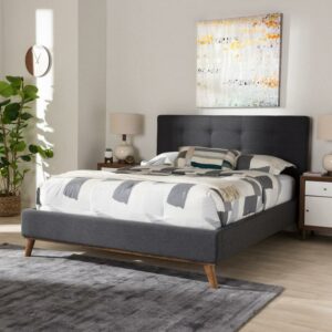 Baxton Studio Valencia Mid-Century Modern Dark Gray Fabric King Size Platform Bed