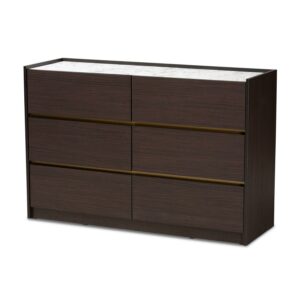 Baxton Studio Walker Modern and Contemporary Dark Brown and Gold Finished Wood 6-Drawer Dresser with Faux Marble Top