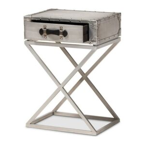 Baxton Studio William Modern French Industrial Silver Metal 1-Drawer End Table