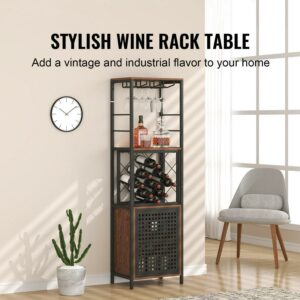 BENTISM Industrial Wine Bar Cabinet with Glass Holder, MDF Board Brown
