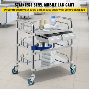 BENTISM Lab Cart Stainless Steel Cart 3 Layers with Refuse Basin 2 Drawers Size L