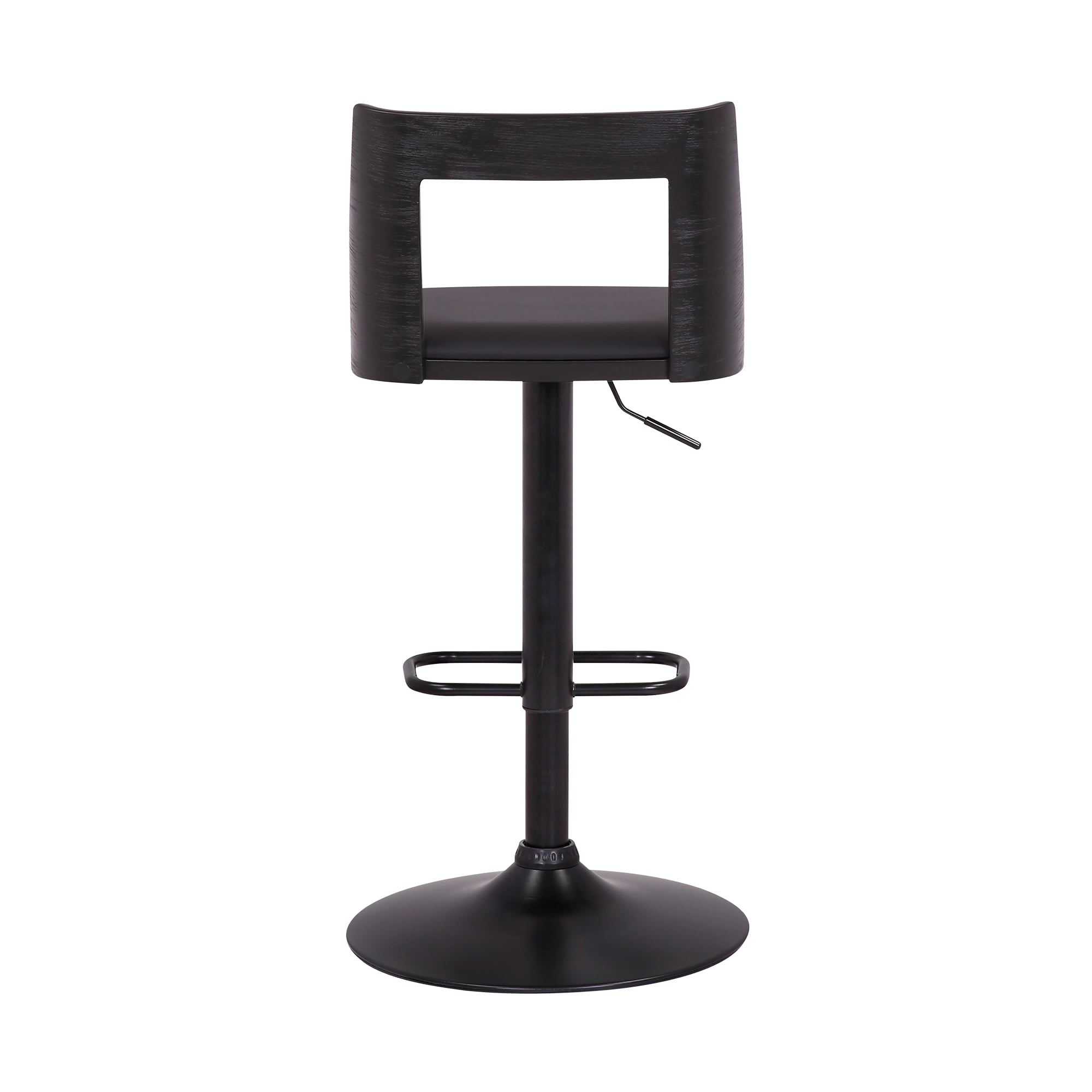 Armen Living Indoor Itzan Adjustable Swivel Gray Faux Leather and Black Wood Bar Stool with Black Base