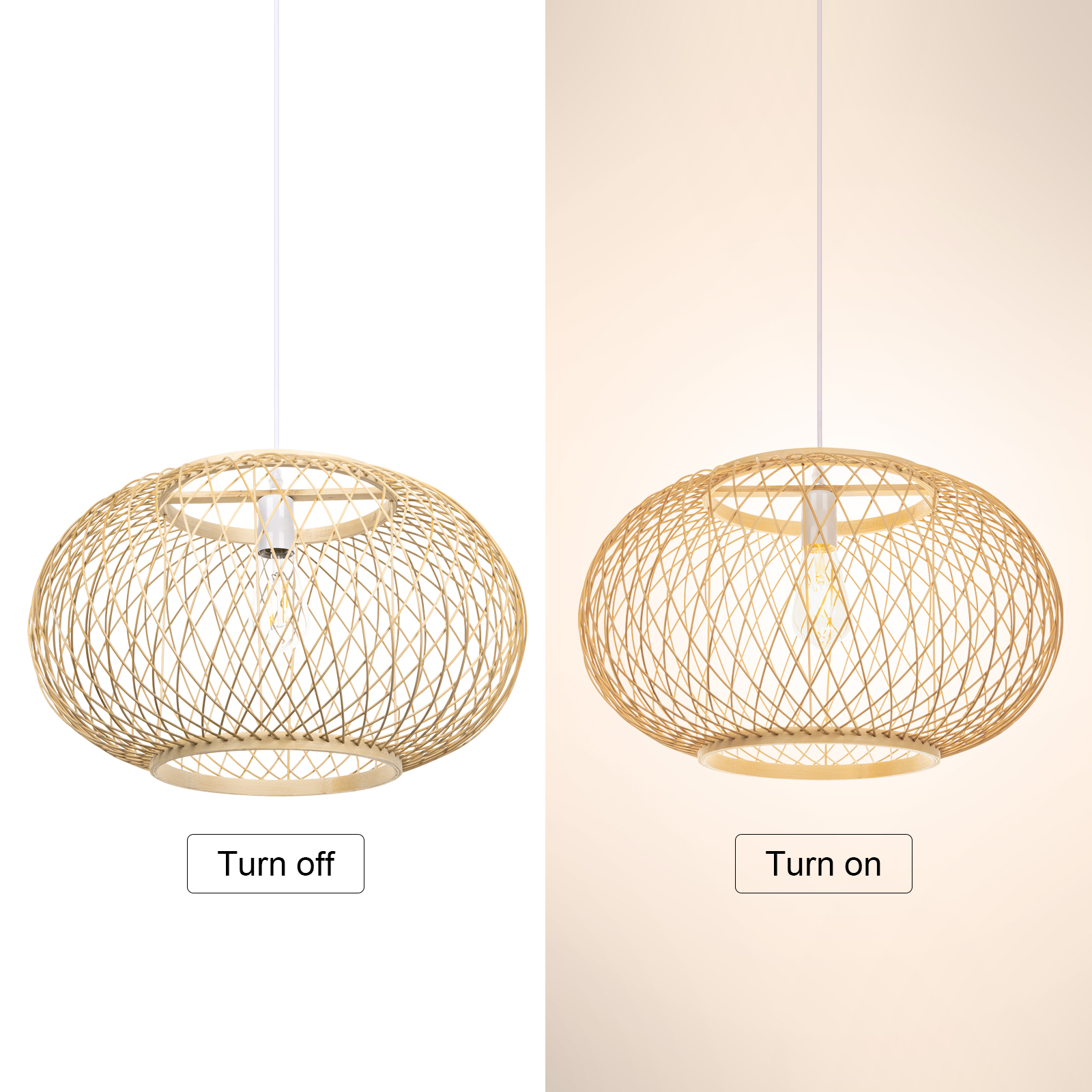 $124.69Bamboo Basket Ceiling Fixtures!!! The Bamboo globe pendant Lights is cross hand-woven of natural bamboo.Each bamboo stick is carefully hand-treated.It is hardwired and come with a 12 cm white ceiling canopy and 200cm=6.56 FT white cord that easy to assemble,all hard-wired accessories are included.You can adjust the cord height to fit your house’s ceiling.It can creates a warm light and beautiful shadow perfect for your contemporary living area.It use E26/27 base 1-Lights and advice 60 W max.The color of the surface changes to a more natural muted beige as the lampshade is exposed to the air.Because of it use natural bamboo and need not be installed in places with humid air, such as bathrooms and need wipe with a soft dry cloth.It is a great way to add bohemian and french feeling to your home and is perfectly adaptable to any ceiling height from your bedroom,kitchen island,or to a dining table or entry.It is really a good present for graduation and wedding party decorations and patio or house warm gift.