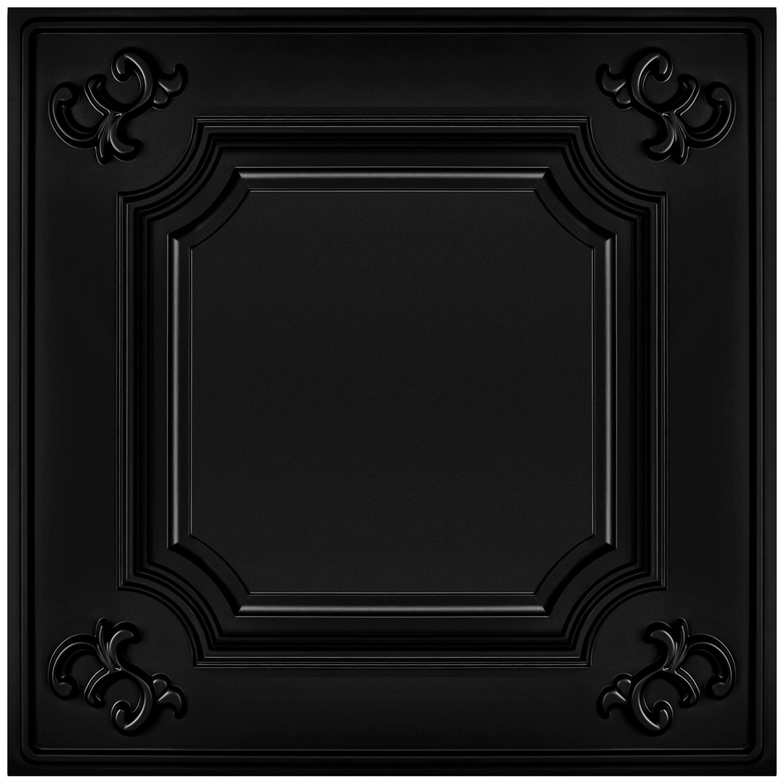 Art3d Ornamental Ceiling Tile 2×2 Glue up, PVC Ceiling Tile Pack of 12-Piece Black Flowers