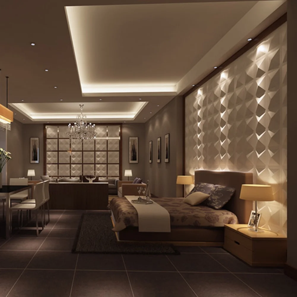 $52.853D wall panels are ideal wall covering products for interior decoration. they are great solutions to ugly, stubborn problematic wall, ceiling or any surface that needs covering. Such as living room, bedroom, kitchen room, TV background, feature walls and ceiling in house decoration; company logo wall,lobby backdrop, reception desk front in office, restaurant, cafes or night clubs decoration. Other than creating a stunning visual effect for wall, TV background 3D wall paper can also be crafted into furniture designs, such as cabinet doors, bed headboard, bedroom wardrobe and kitchen cabinet.