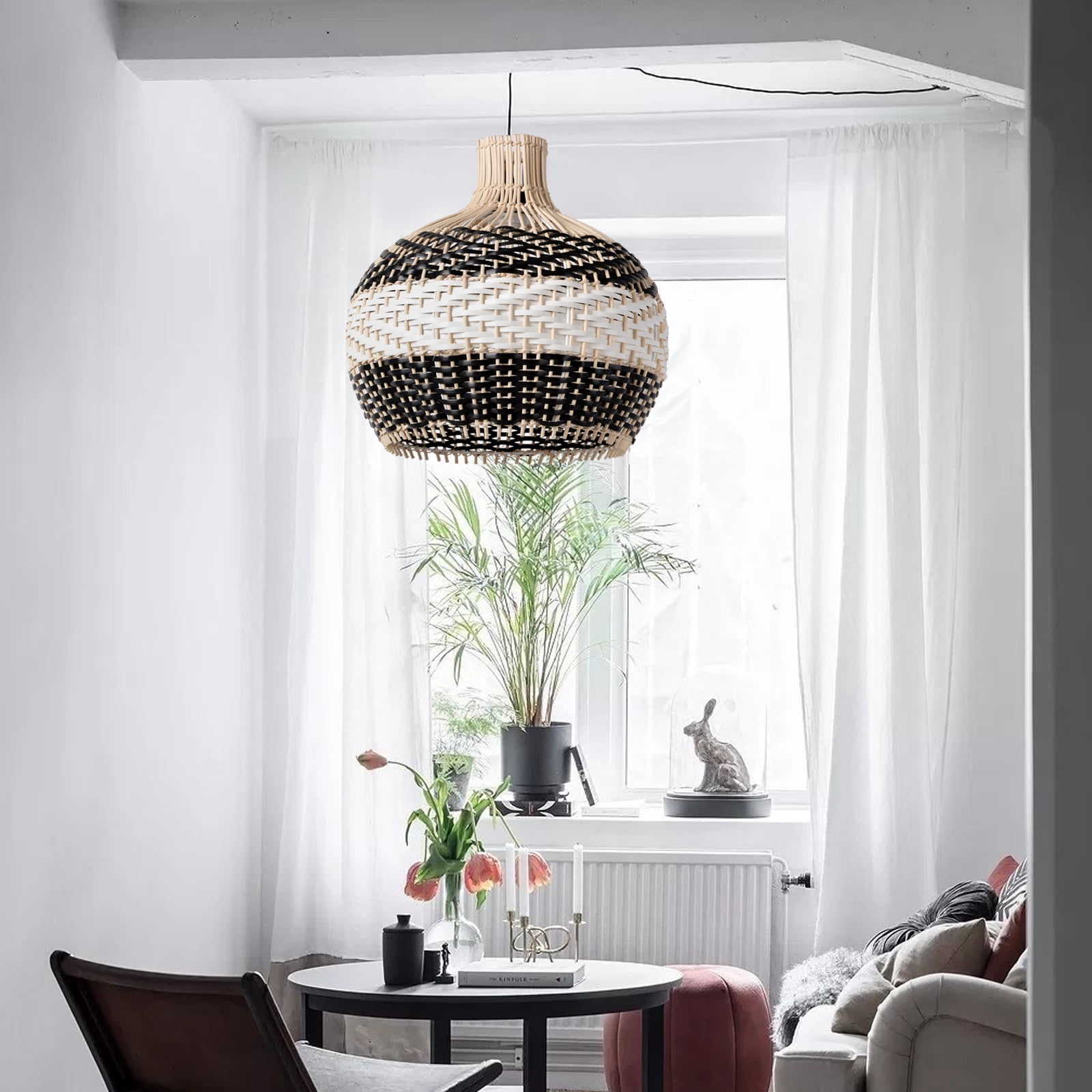 $85.99Original price was: $85.99.$72.24Current price is: $72.24.The Dome pendant light fixture is cross hand-woven of natural rattan and black color rattan shade.It come with a 12 cm black ceiling canopy and 200cm black cord.The flush mount ceiling light is easy to assemble,all hard-wired accessories are included.You can adjust the cord length to fit your house.It can creates a warm light and shadow perfect for your bohemia and simple living area.It use one E26/27 base bulb and advice 60W max.The bamboo hanging lamp light is a great way to add bohemian feeling and warmth to your home and is perfectly adaptable to any ceiling height from your living rooms,restaurants,kitchens,dining rooms, laundry rooms, hallways, cafes, basements,corridor, stairwells,bars, clubs, libraries, office, entrance,bedrooms,reading rooms and so on.. We provide three size and you can choose to match different sizes to use in the kitchen island.It is really a good gifts for graduation and wedding party decorations and house warm gift.