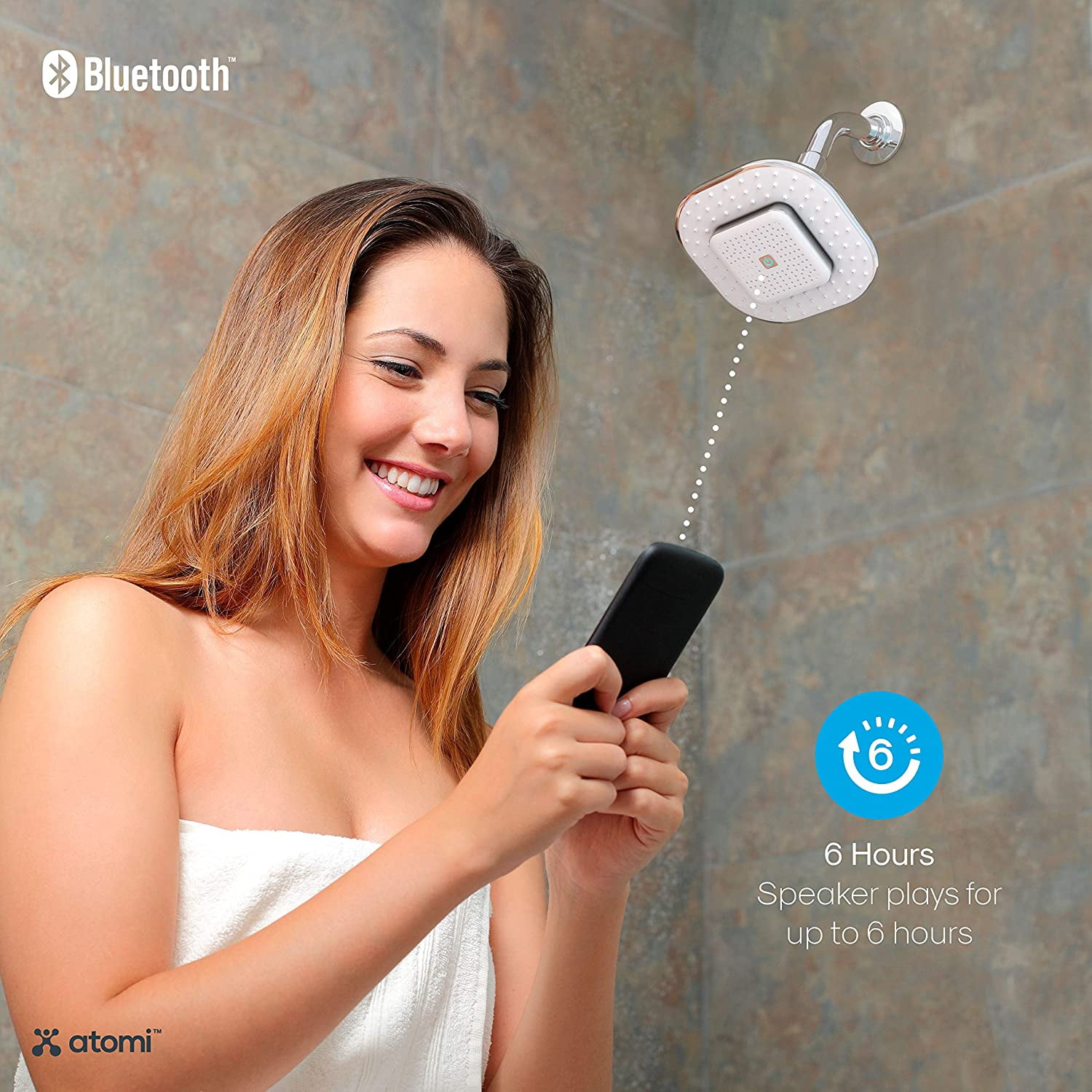 $37.38Never miss a beat while in the shower with the Atomi Showerhead with Bluetooth Speaker. With the magnetic removable speaker is a breeze. Enjoy up to 6 hours of playtime while relaxing in the shower and easily remove and place on the bathroom vanity countertop to enjoy while you finish getting ready for any occasion. IPX4 waterproofing protects against accidental splashes on all sides. Never miss another call while showering; the Atomi Bluetooth Shower Head is equipped with a built-in microphone for hands-free calls; start and end calls effortlessly with the touch of a button; perfect for smart homes