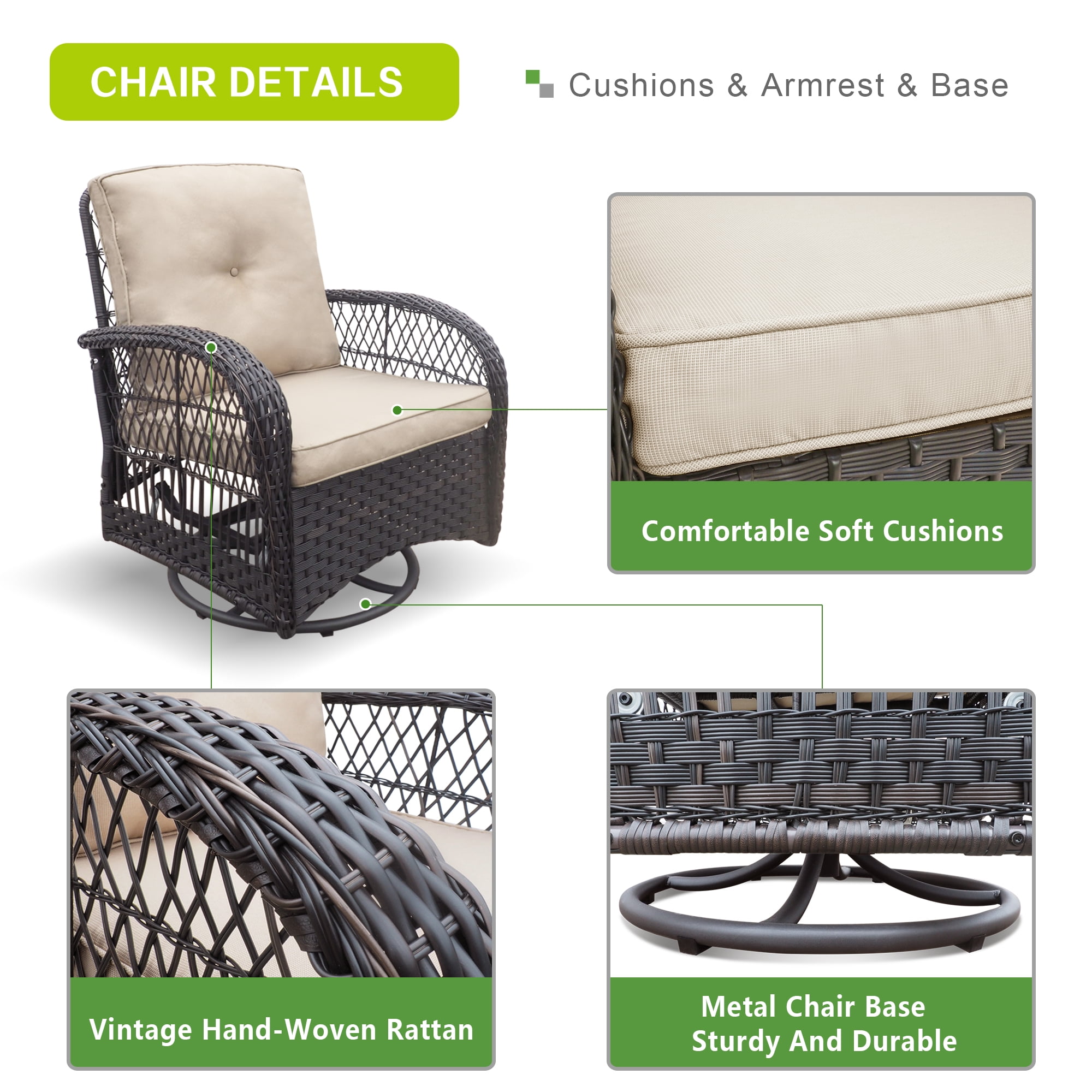 ATR ART TO REAL Outdoor Rocker Chair Bistro Set with Cushions, Khaki