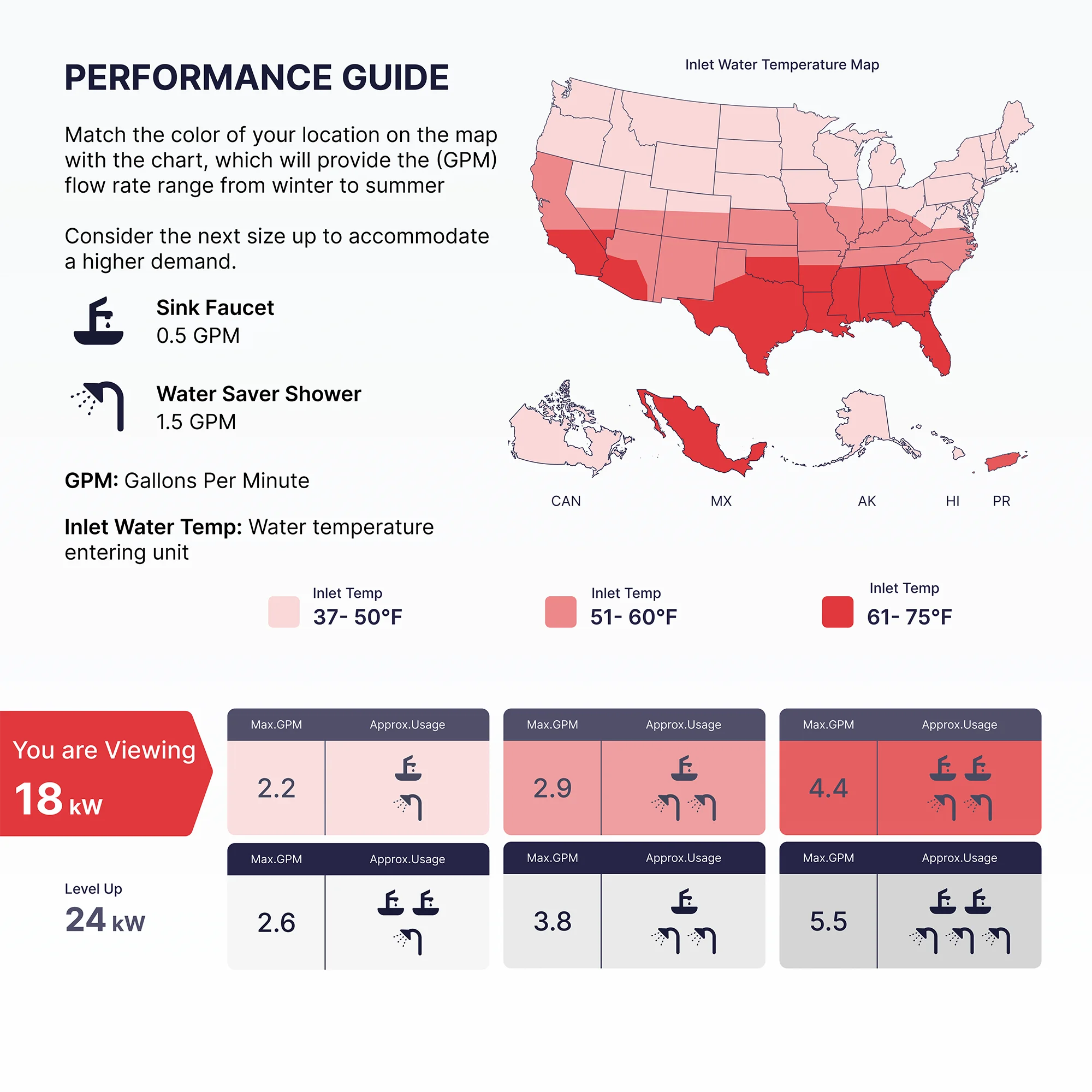 $309.59The ATMOR 912 series multi-application tankless electric water heater is an eco-friendly, efficient and convenient solution that delivers a continuous supply of hot water instantly, without the wait and worry of running out. The intelligent on-demand water heating technology will automatically turn on and off by sensing water flow, helping you to reduce water consumption, eliminate costly water waste, and save on energy costs. The compact footprint of this water heater saves you space by simply installing it against the wall either under the sink out of sight or near the point of use, where its elegant design blends into your home environment among other appliances. Unlike a gas water heater, the compact design requires no venting, giving you the flexibility to install anywhere inside your home, office, garage, or even an RV. (IMPORTANT: inlet temps vary by location and seasonality. Selecting the right water heater depends on your incoming water temperature, flow rate, and desired output temperature. – See Performance Guide Images and/or Manual before purchasing.) Should you have any questions and need further assistance, give of our technical support agents a call at 1-888-783-6082, Monday – Friday, 9AM-5:30PM EST.