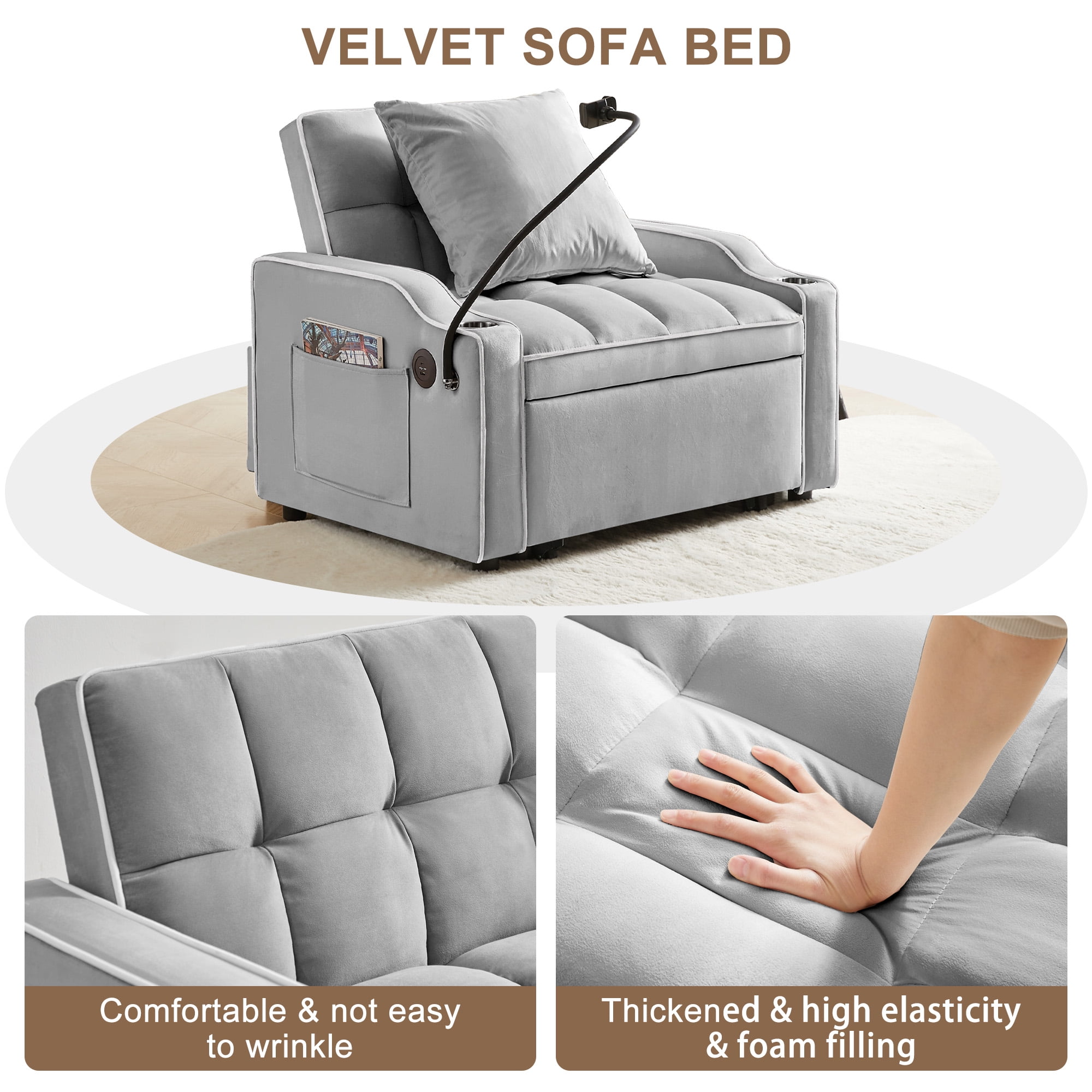 Aukfa Sleeper Chair Bed, Convertible Pull Out Sofa Bed with USB Port, Cup Holders and Swivel Phone Holder, Gray