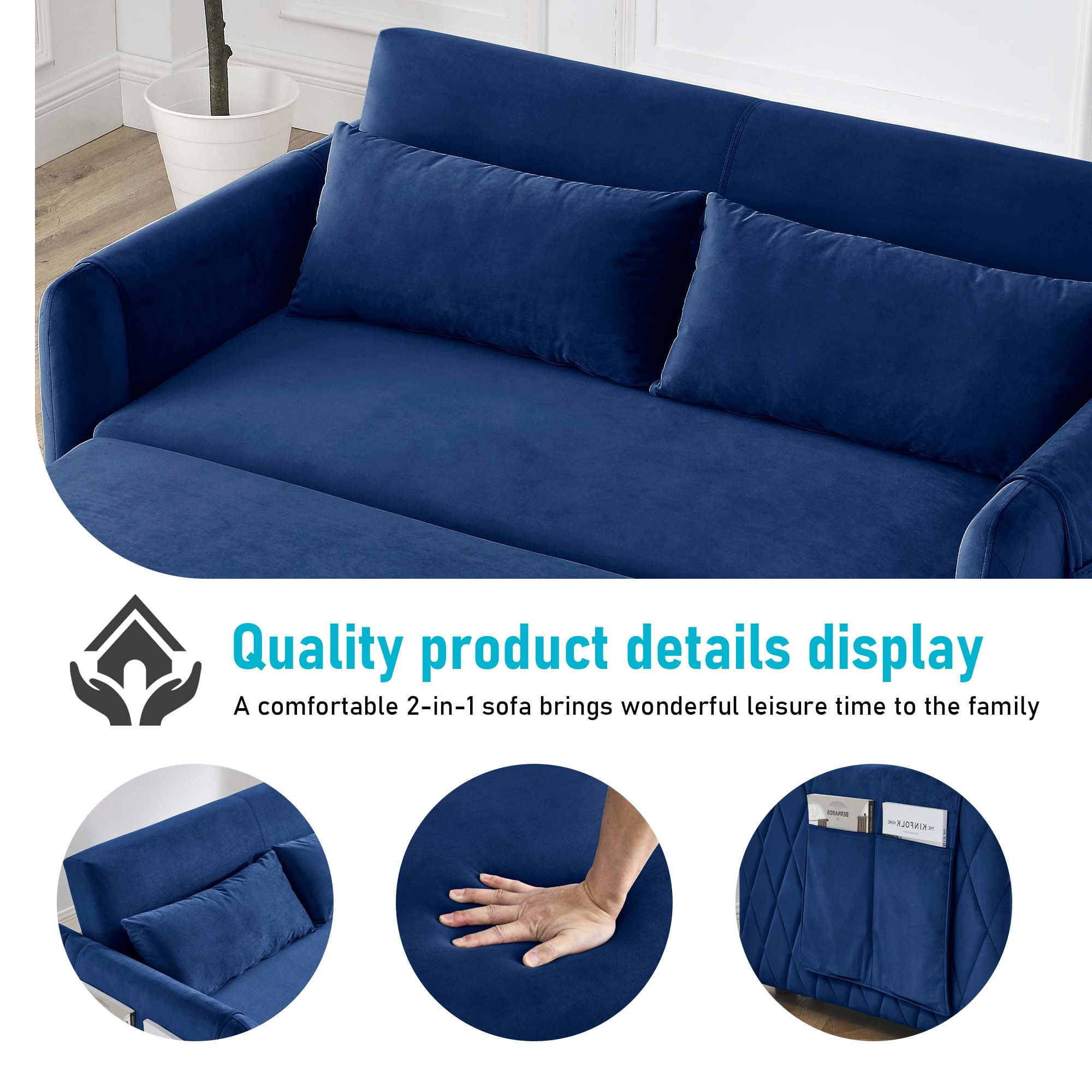 Aukfa Sleeper Sofa Bed, Convertible Loveseat Pull Out Sofa Couch for Living Room – Blue