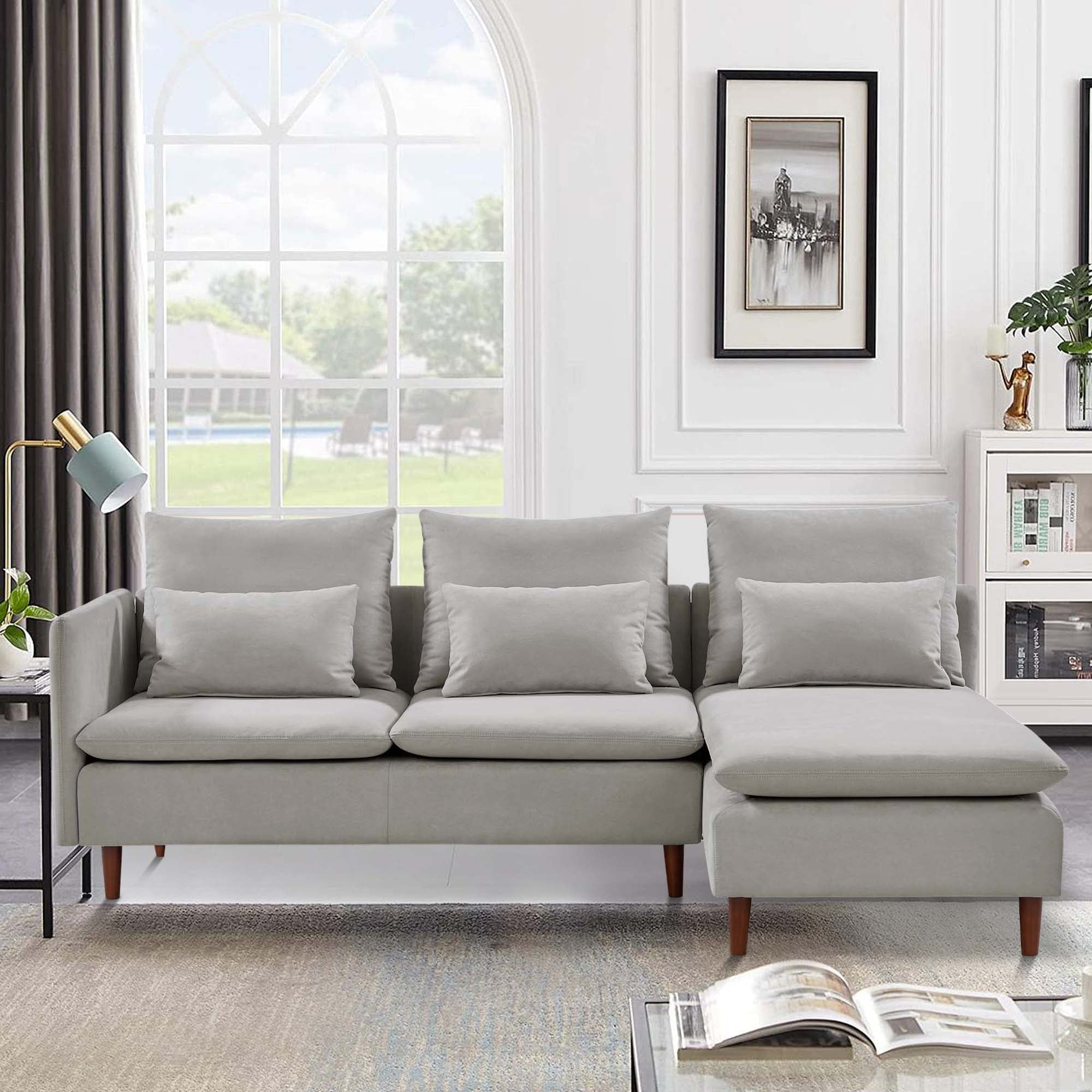 Aukfa Sectional Couch, 92″ L shape Couch for Living Room, Solid Wood Legs, Suede, Gray