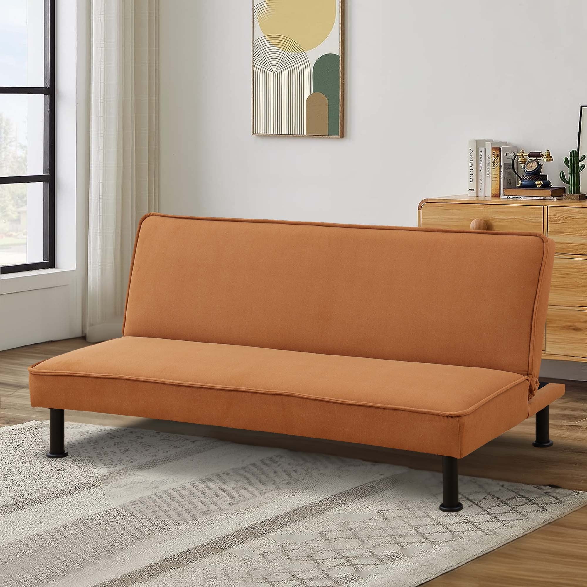 Aukfa Studio Futon Convertible Sofa Bed for Home Office, Upholstered Loveseat, Flannel, Orange