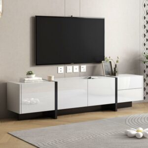 Aukfa TV Stand with 2 Drawers and 3 Big Cabinets for TVs up to 80″ – White