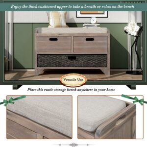 Aukfa Wood Storage Bench with Removable Basket and 2 Drawers for Entryway – Light Brown