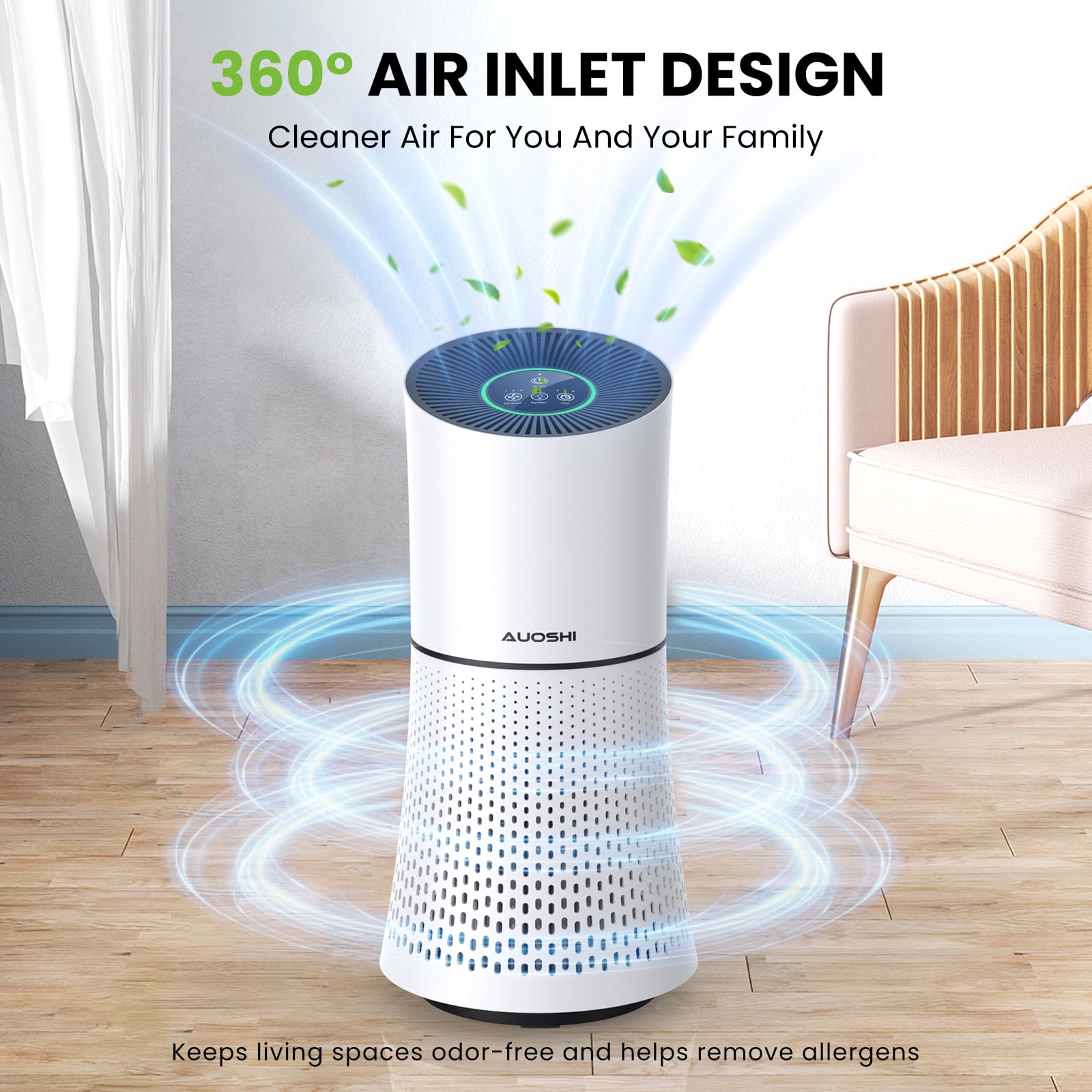 AUOSHI Air Purifiers H13 True HEPA Filter Air Purifier for Home Bedroom Room Ozone Free Air Filtration System Cleaner Odor Eliminators Remove 99.97% Dust Smoke Pollen (White)
