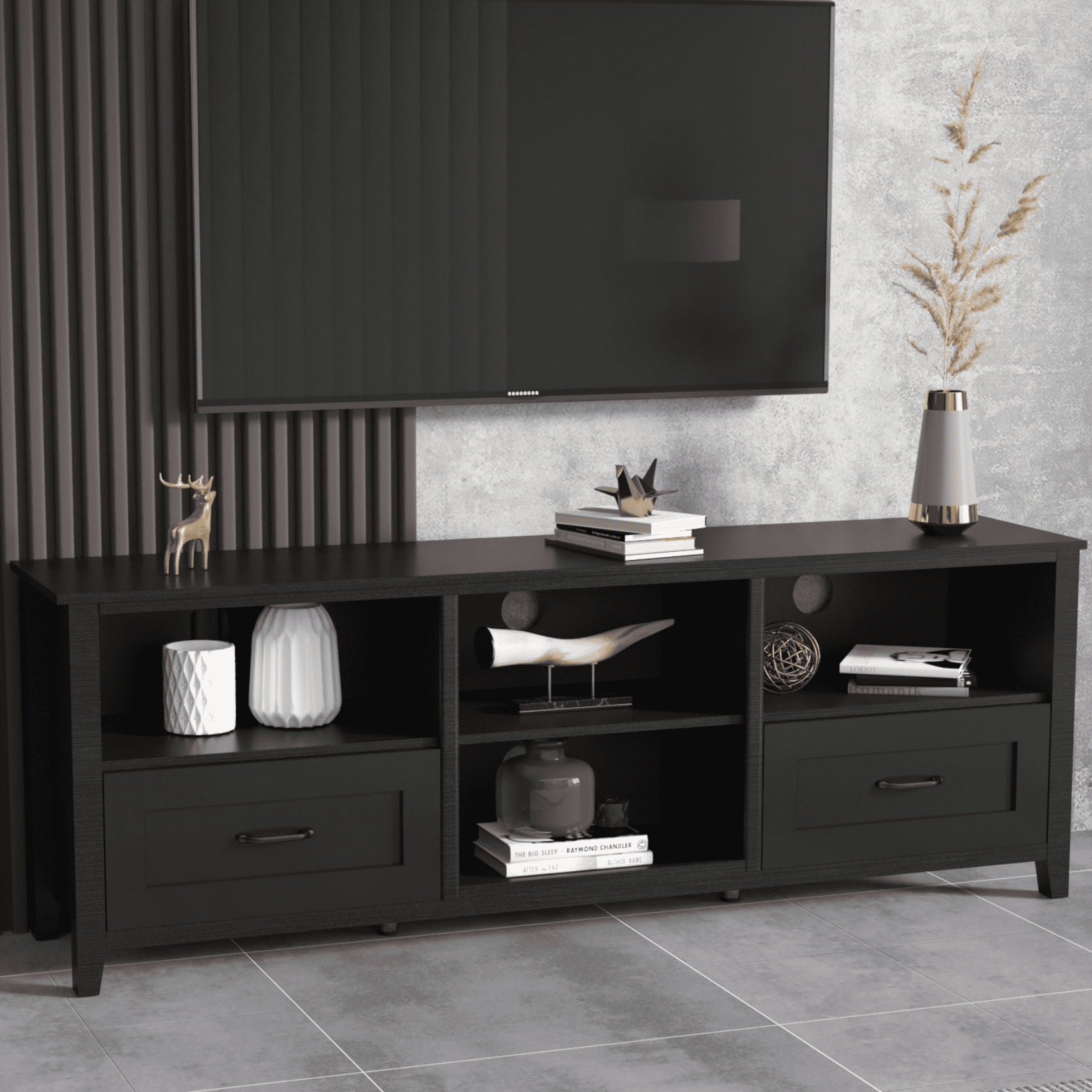 Aukfa TV Stand for TVs up to 80″ with Storage Drawers and 4 Open Storage for Living Room – Black