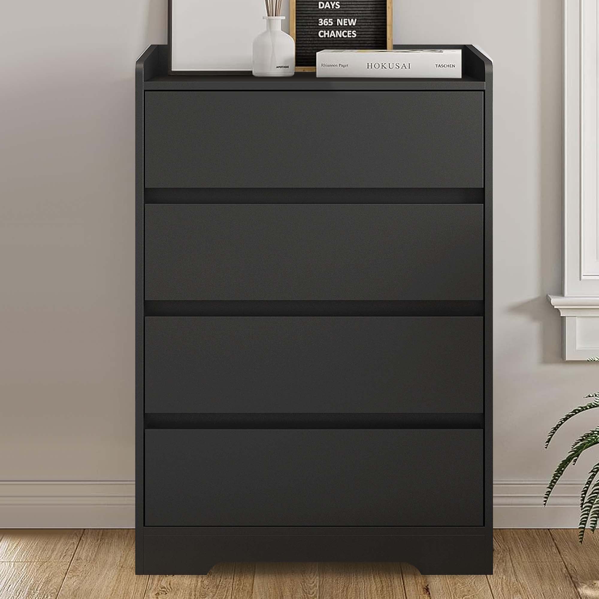 Aukfa Wood 4 Drawer Dresser,Chest of Drawer with Anti-fall Device, Black
