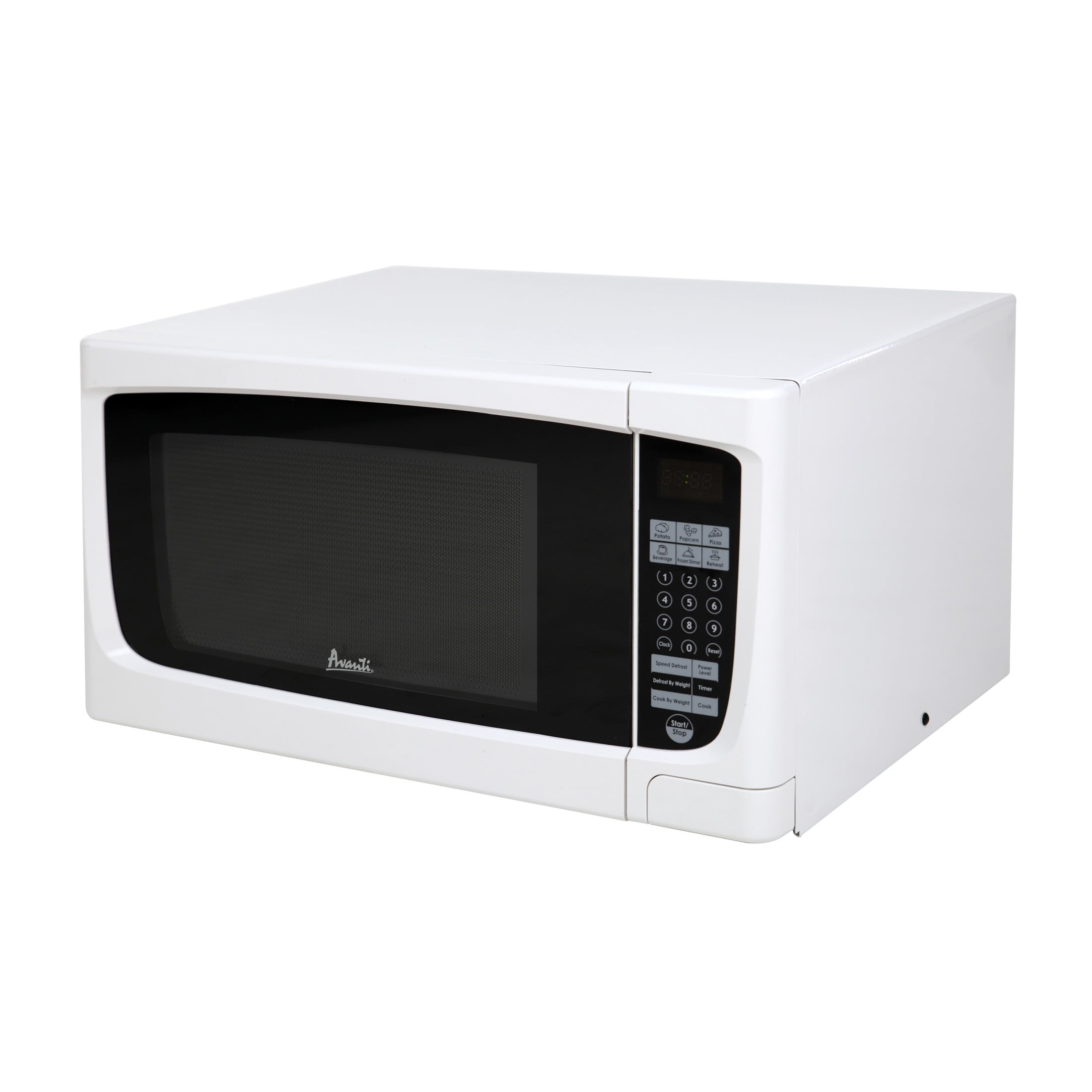 $221.701.4 Cubic Foot Capacity Microwave Oven, 1,000 Watts, White Save counter space with this compact, 1.4 cubic foot, microwave oven from Avanti. The perfect countertop microwave for the dorm, man cave, office, studio apartment, RV, tiny home, rental room, condo, vacation home, or anywhere you need to cook food fast. This small microwave features 1,000 watts of cooking power, an electronic control panel, nine pre-programmed cooking settings (popcorn, baked potato, pizza, beverage, frozen dinner, reheat, fresh vegetable, frozen vegetable, soup), and a removable glass turntable all in its compact footprint that fits perfectly on the countertop. 1.4 cubic foot capacity. 1,000 watts of cooking power. Features an electronic control panel. Speed defrost. Cook/defrost by weight. Kitchen timer.