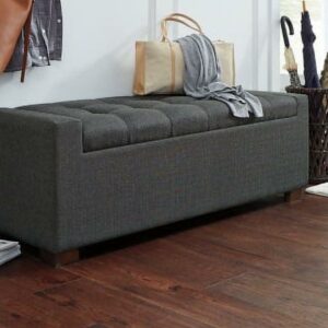 Signature Design by Ashley Cortwell Storage Bench – Gray Polyester Upholstered with Tufted Cushion