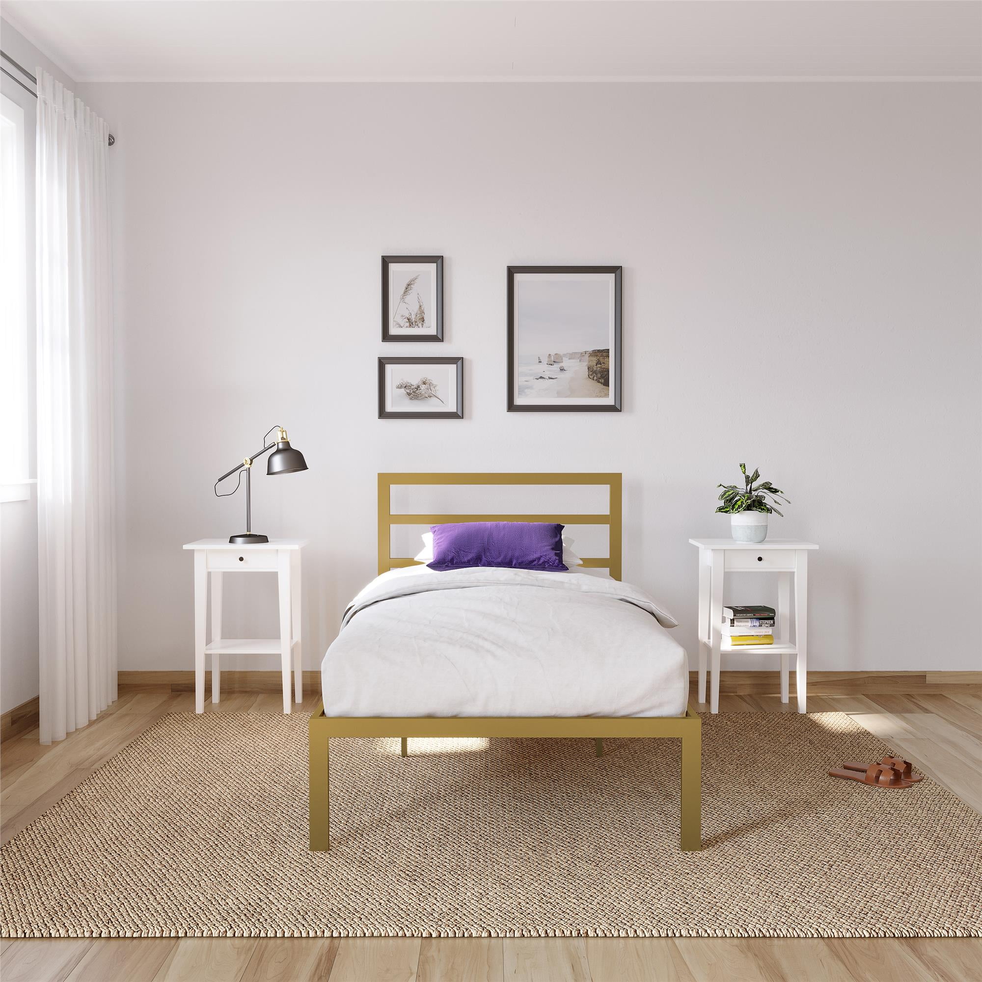Signature Sleep Premium Modern Platform Bed with Headboard, Industrial Style, Sturdy Metal Frame with Slats, Twin, Gold