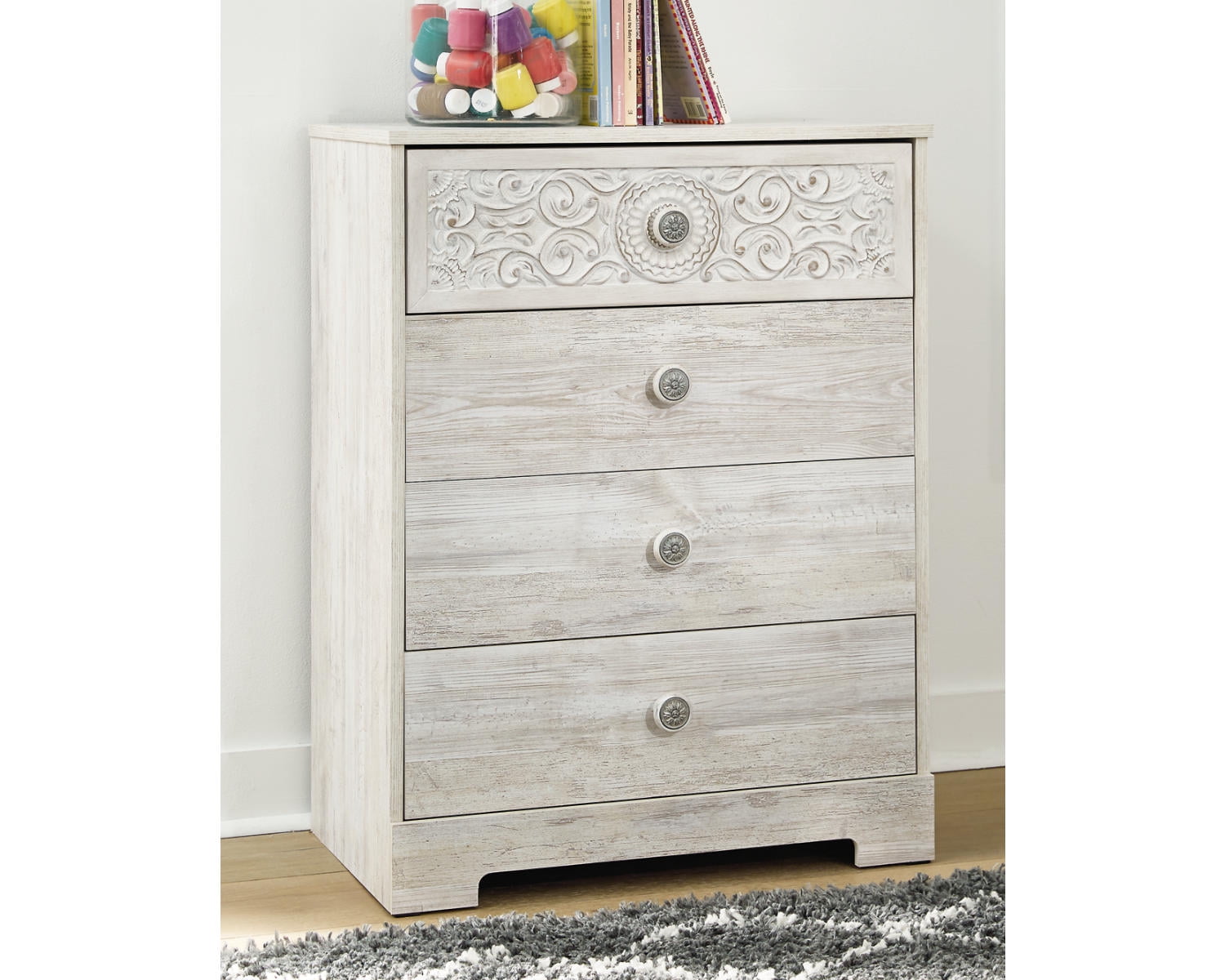 Signature Design by Ashley Paxberry Boho 4 Drawer Chest of Drawers, Whitewash