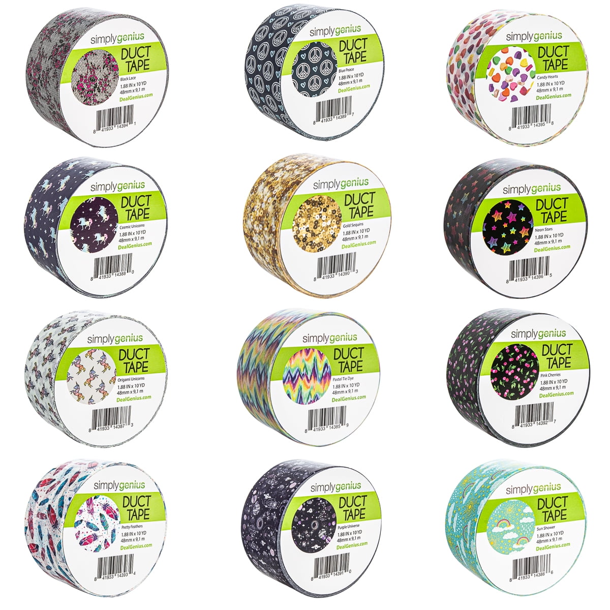 Simply Genius (12 Pack) Patterned Colored Duct Tape Variety Pack Rolls Arts Crafts, Kids to Adult