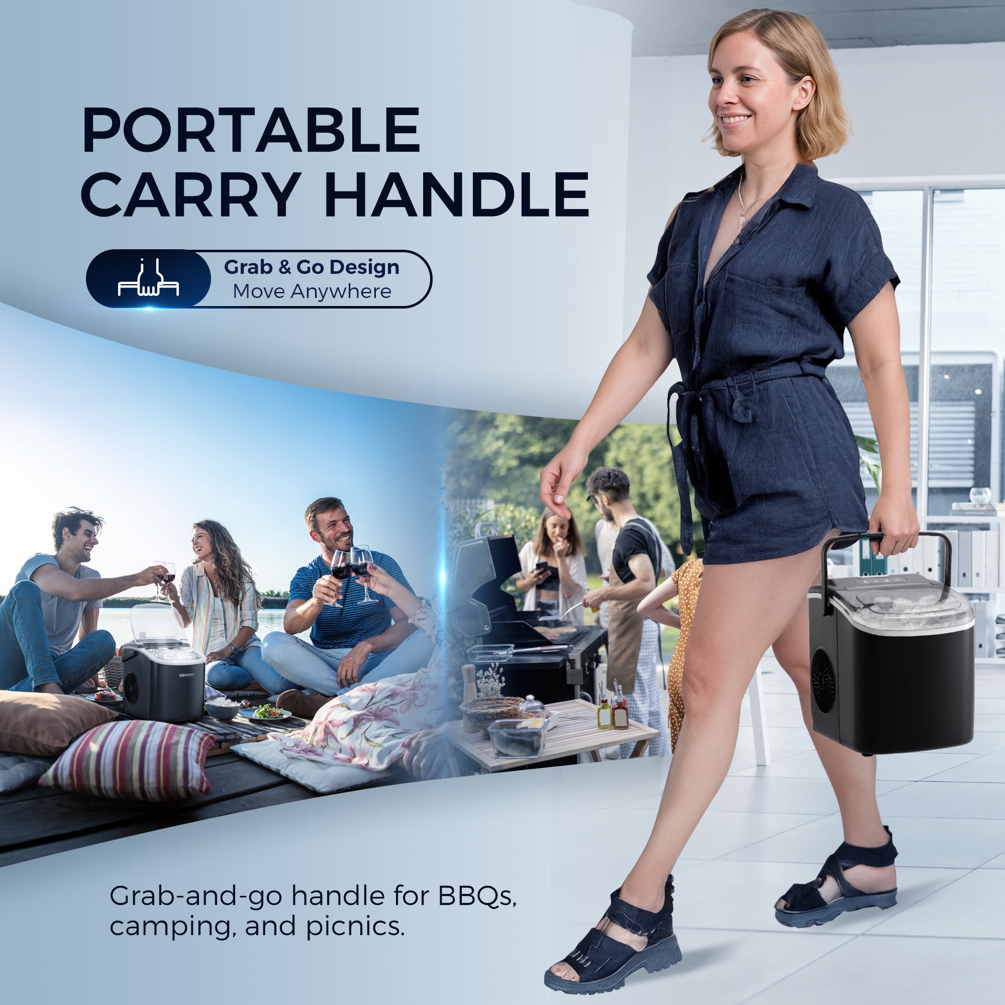 $74.81Original price was: $74.81.$45.27Current price is: $45.27.Step up your ice-making with the Simzlife compact black ice maker! It makes bullet-shaped ice cubes in just 6 minutes. It’s stylish, compact, and comes with a removable ice basket and automatic cleaning function for added convenience. Keep an eye on the ice-making status with the infrared sensor. Its small size makes it easy to store anywhere. Whether at home or on an RV adventure, this portable ice maker is perfect for cooling down your favorite drinks! Specification: Operating cycle: 6-13min Ice making capacity per cycle: 9pcs Ice type: Bullet Ice basket capacity: 1.3 lb Ice capacity: 26lbs/24h Refrigerant: R600a Size: 9.37”(L)*11.61”(W)*11.42”(H) Net weight: 13.46lbs