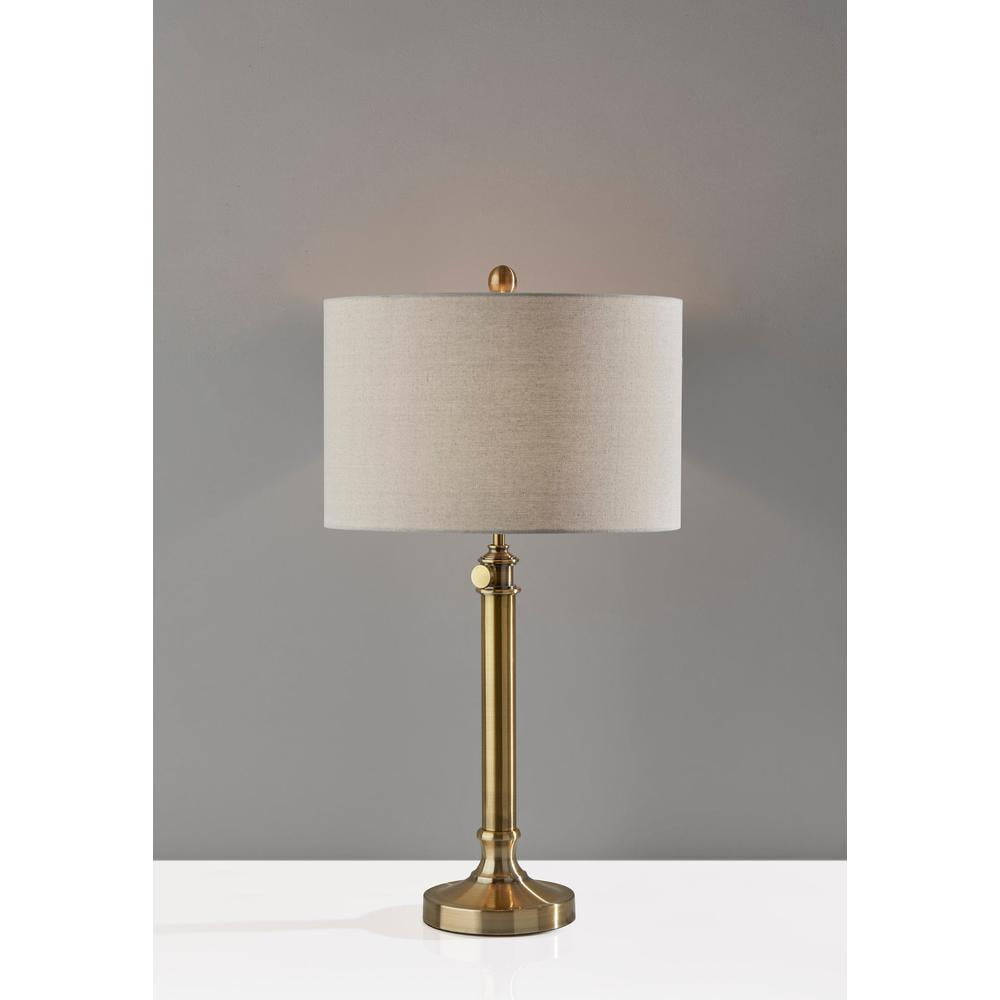 $86.84Set the Barton Table lamp on your living room console or nightstand for a touch of modern farmhouse vibes. Modify the lamp to fit your space with a decorative joint on the pole that adjusts the height from 26“-34.5“. An antique brass metal finish paired with an oatmeal linen fabric shade brings warmth to any space. Turn the lamp on and off with a rotary switch on the socket.
