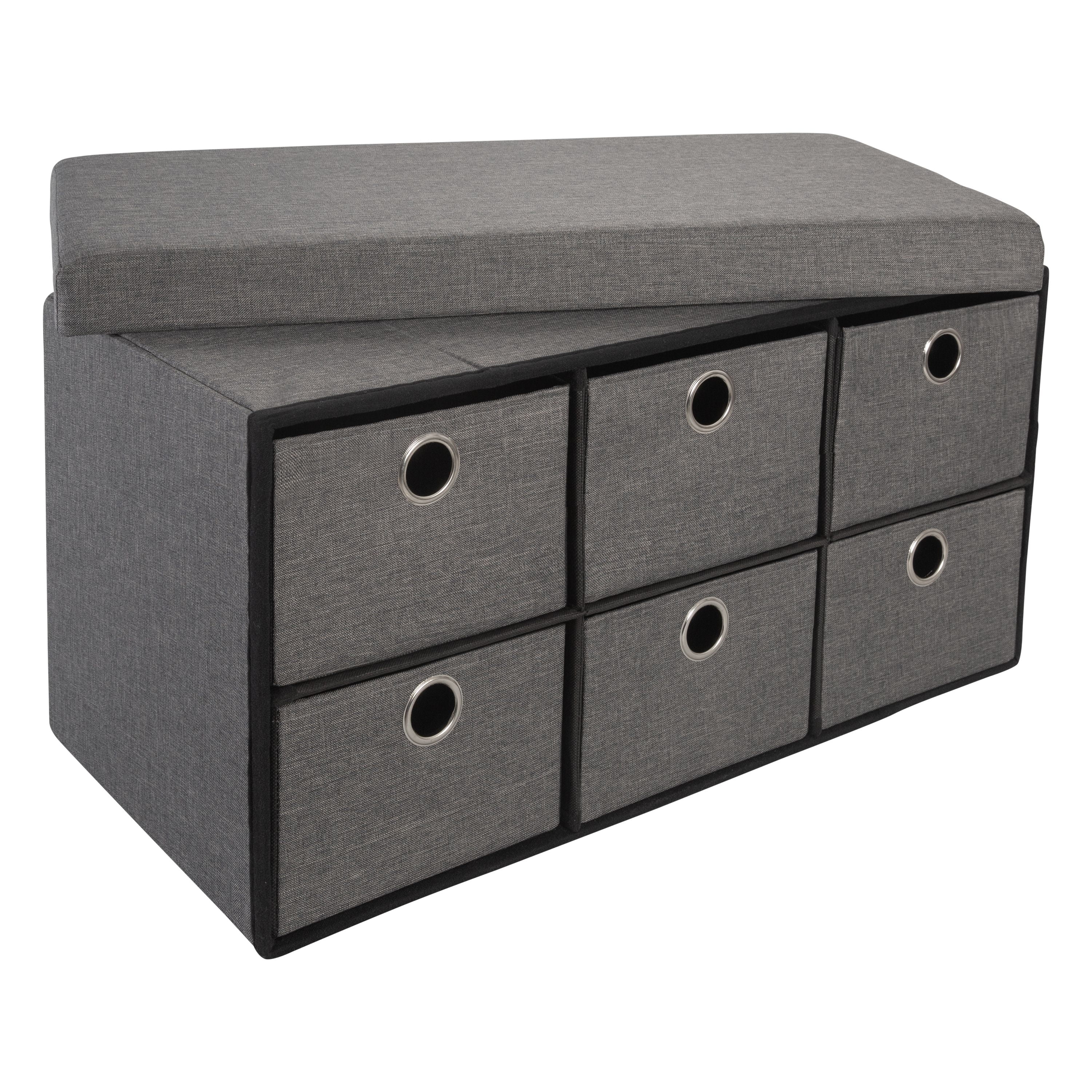 Simplify 6 Drawer Collapsible Double Storage Ottoman in Gray Faux Linen