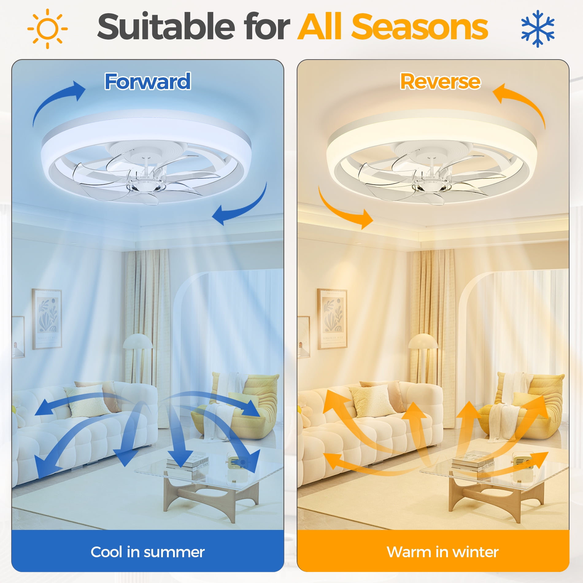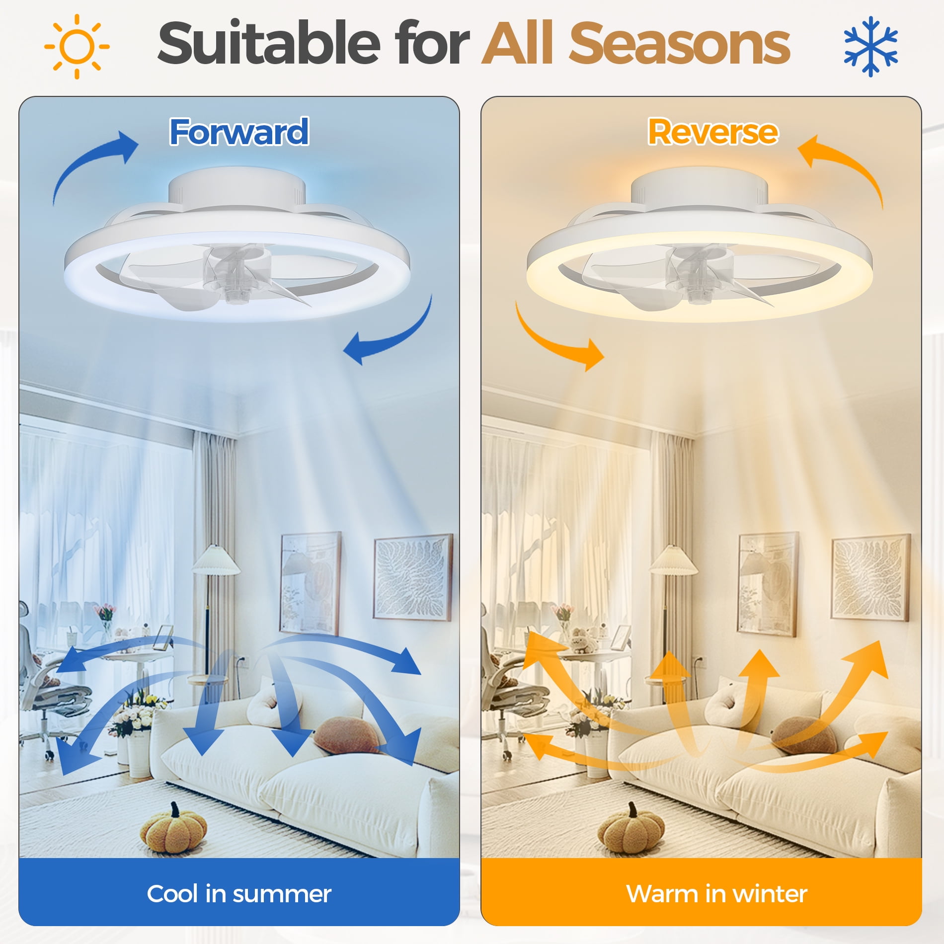 SKVEVN 19″ Ceiling Fan with Light – 3 Colors Lighting, 6 Wind Speeds, Remote Control&APP, Modern Dimmable LED, Smart Ceiling Fan for Bedroom(White)