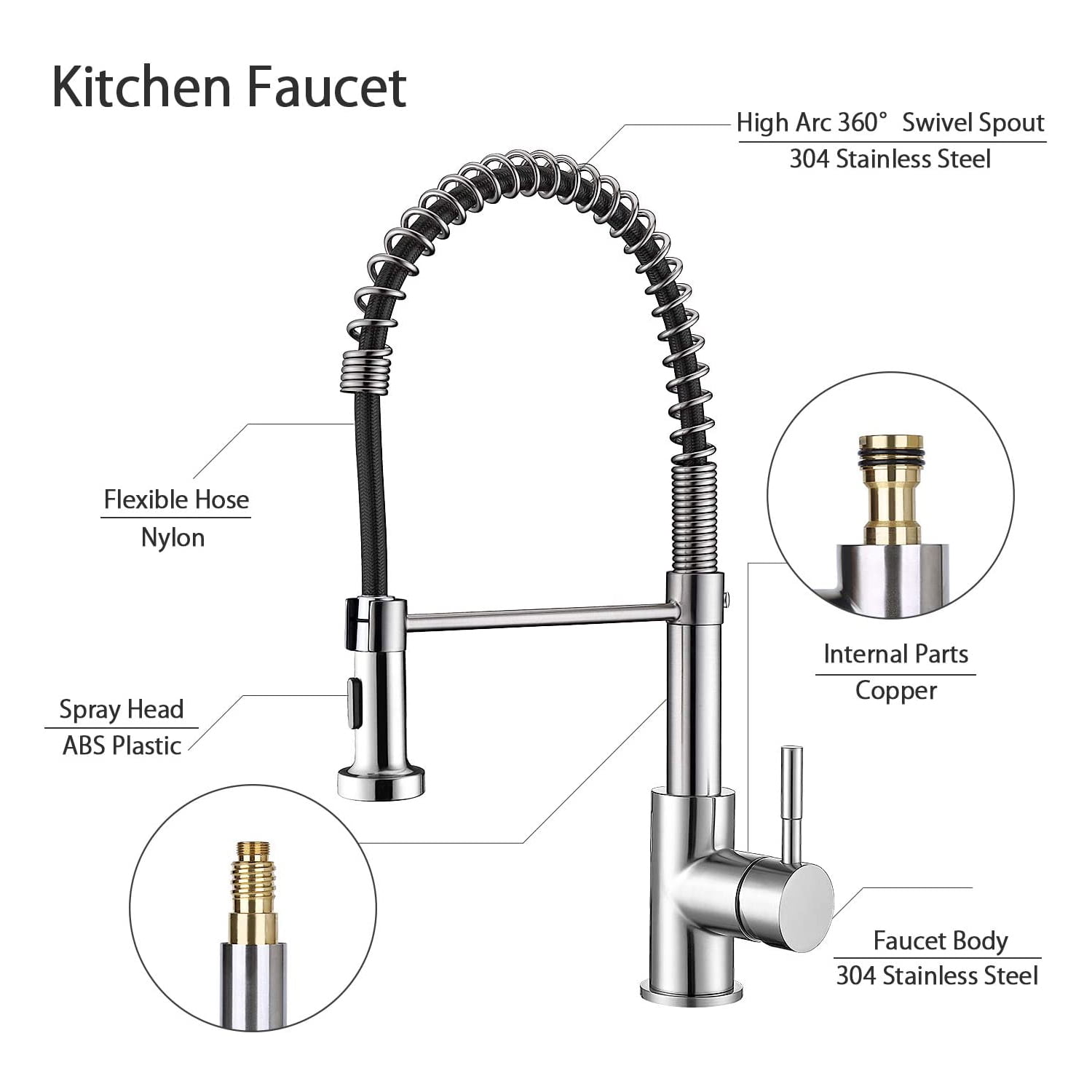 SkyGenius Single Handle Pull Down Kitchen Faucet Spring Sprayer Brushed Nickel Sink Faucet