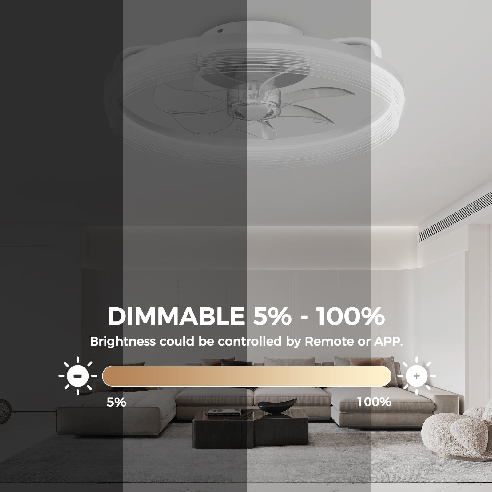 Skvevn 20″ Ceiling Fan with Light, 6 Wind Speeds, Remote & APP Control, Modern Dimmable LED Ceiling Fan, Smart Ceiling Fan for Bedroom